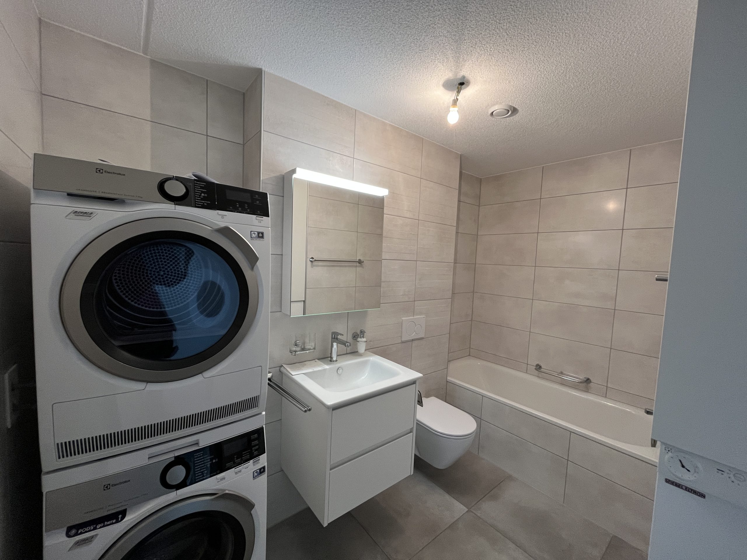 Rez-de-chaussée/étage 1 à 2/attiques : chaque appartement comprend une entrée avec penderie et armoire murale, une cuisine agencée ouverte sur séjour avec porte-fenêtre coulissante qui donne accès à un balcon/une terrasse, salle(s) de bain avec WC, lavabo, baignoire et/ou cabine de douche, monobloc de ventilation mécanique contrôlée et colonne de lavage avec lave-linge et sèche-linge (buanderie dans les attiques). Revêtement en carrelage dans les locaux de jour et en parquet dans les locaux de nuit.